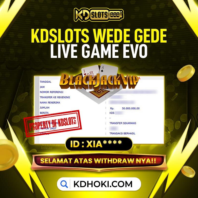 Selamat kepada member KDSLOTS game Blackjack VIP O (EVO) user id XIA**** Telah berhasil mendapatkan kemenangan sebesar Rp 50.000.000 Setelah mengisi formulir withdraw dengan kurung waktu hanya 5 – 10 menit pihak KDslots sudah melakukan transfer kepada pemilik User ID dan dana sudah dapat di cairkan oleh pemenang. Bukti pembayaran yang kami berikan merupakan bukti pembayaran yang SAH / VALID yang langsung di dapatkan melalui tanda transfer transaksi dari Bank yang dituju